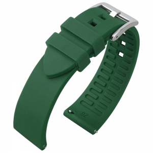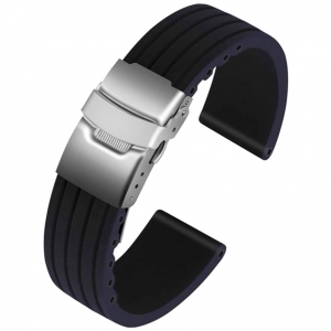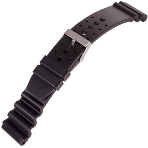 Dieses Taucheruhrenarmband aus Kunststoff ist das vielleicht am häufigsten verwendete Band für u.a. Seiko und Citizen Taucheruhren. Das Band hat am Ansatz eine Wellenform, die beim Tiefseetauchen unter Druck nachgeben kann.