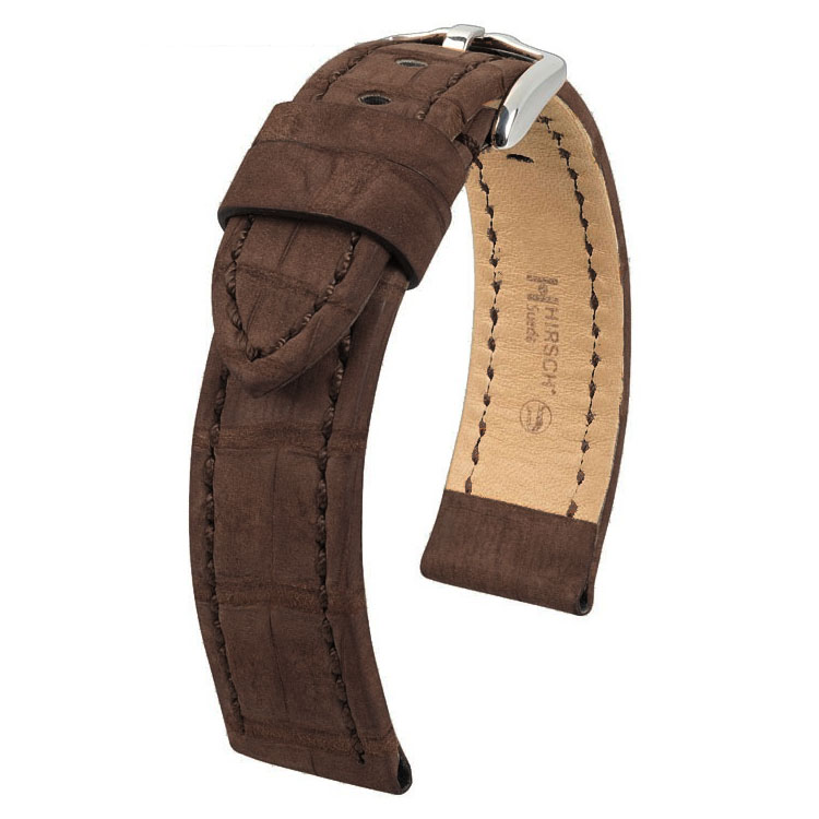Hirsch Sueda Assolutamente Uhrenarmband Krokodil-Wildleder Dunkelbraun