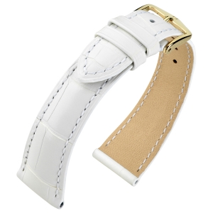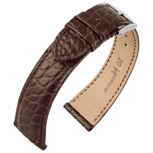 Der Hirsch Connoisseur ist ein Klassisch-schönes, handgebürstetes Alligatorarmband mit charakteristischer Narbung. Ober- und Futterleder sind mittels HIRSCH Rembordé Technologie fugenlos miteinander verbunden