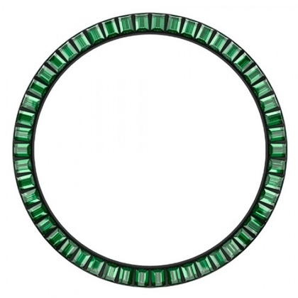 Eine Marc Coblen Lünette (Uhrenring, Bezel) zum selbst auswechseln aus schwarzem Stahl mit dunkelgrünem Kristallrand. Der Uhrenring wird ganz einfach auf- und abgeschraubt.