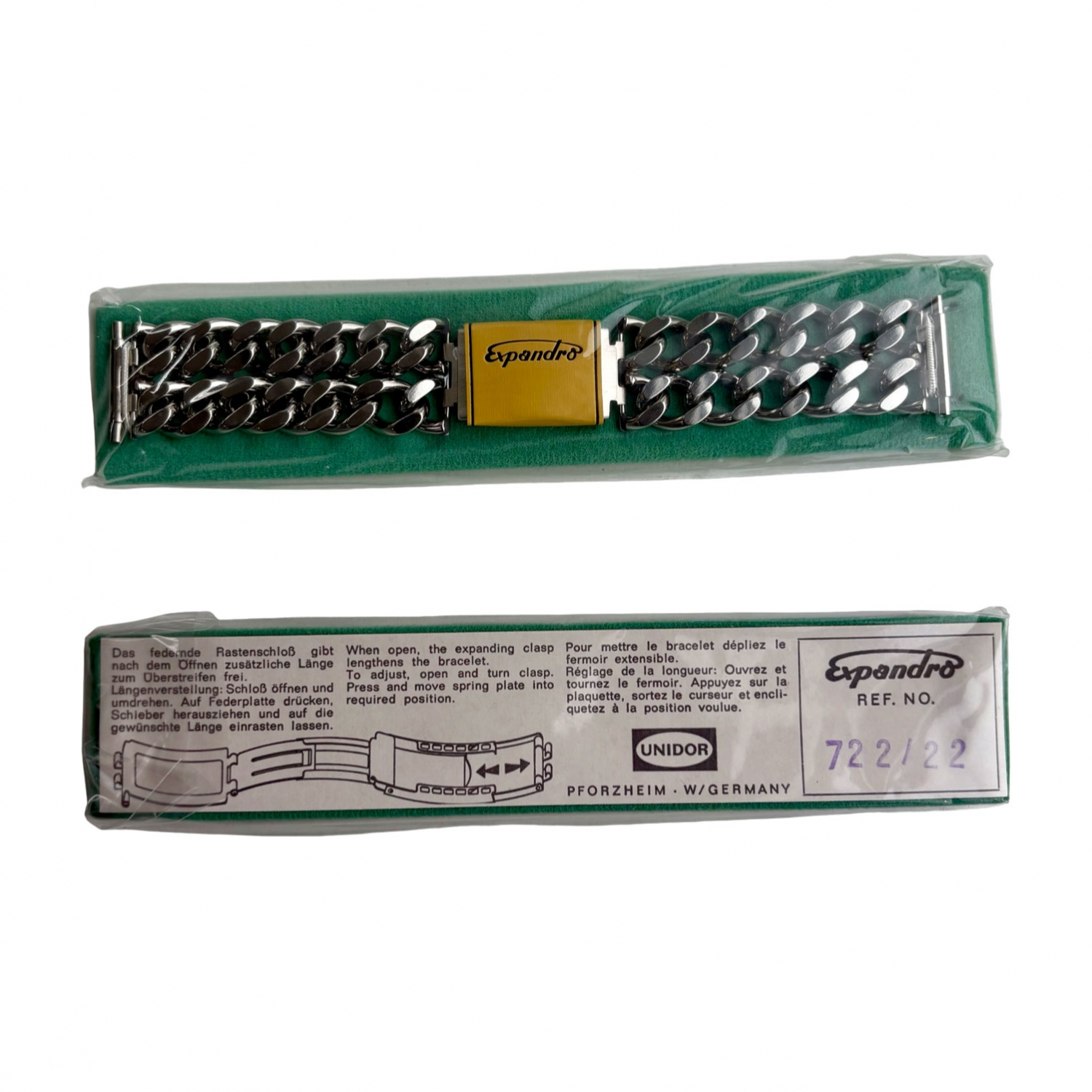 Expandro Double Chain Link Stahl Uhrenarmband 722/22 - Vintage New Old Stock 1970er Jahre