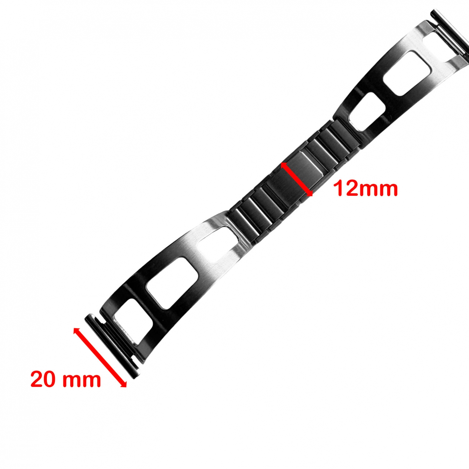 Das Uhrenarmband ist am Uhrenansatz 20mm breit und bei der Schliesse 12mm. Wie in den 70er Jahren üblich, kann der Ansatz mit einer Feile schmaler gemacht werden, wodurch das Band auch für Uhren mit einem 19mm breiten Ansatz geeignet ist. Wir empfehlen das Band nicht zu kaufen, wenn Ihr Pulsumfang grösser ist als 18 cm.