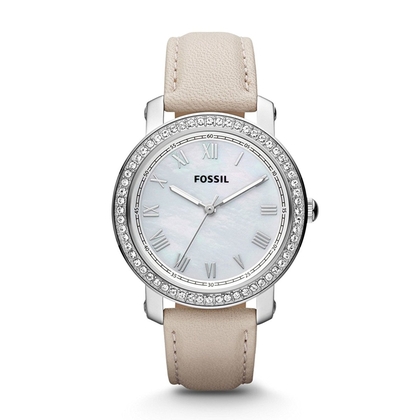 Dieses Uhrenarmband wird aus beigem Leder gefertigt und kommt an einer original Fossil Stahlschliesse.