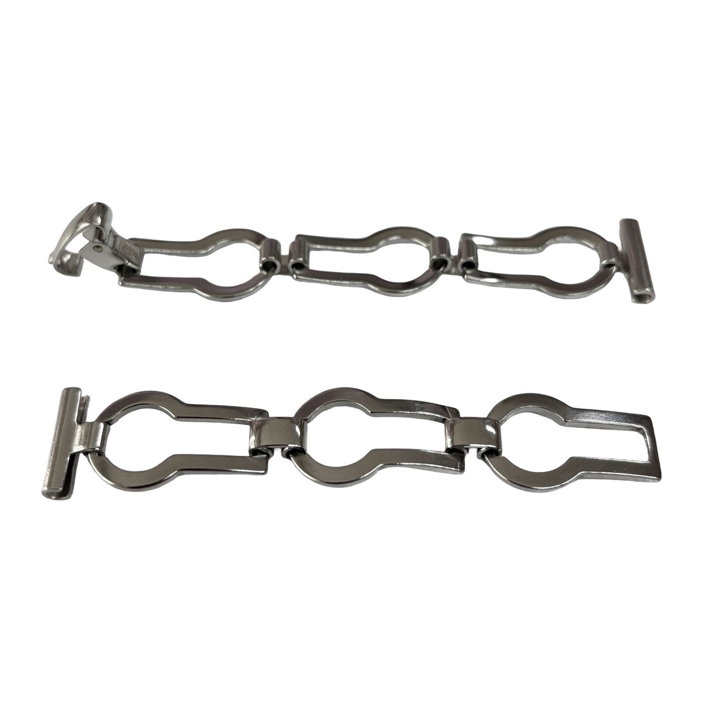BITTE BEACHTEN SIE! Dieses Uhrenarmband besteht aus 6 Gliedern mit einer Schliesse in der Mitte. Da das Uhrenarmband nur eingekürzt werden kann, indem man ein komplettes Glied entfernt, bitten wir Sie dies vor dem Kauf zu berücksichtigen. Dieses Band eignet sich vor allem als Schmuck-Uhrenarmband (also lose am Puls hängend). Das Uhrenarmband ist insgesamt 15,5cm lang, die Glieder sind 2,5cm lang. Wir empfehlen dieses Uhrenarmband nicht zu kaufen, wenn Ihr Pulsumfang grösser als 18cm ist.