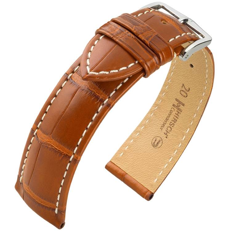 Hirsch Connoisseur Uhrenarmband Louisiana Alligatorleder Matt Cognac