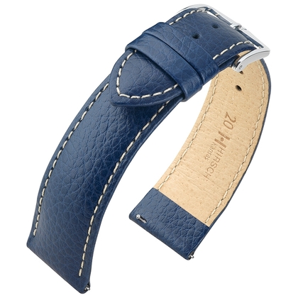 Hirsch Kansas Uhrenarmband Kalbsleder Büffelstruktur Blau mit Weisser Naht