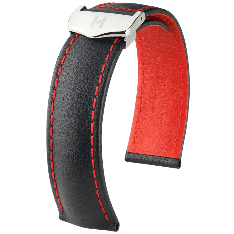 Hirsch Speed Uhrenarmband für TAG Heuer Faltschliesse Schwarz mit Roter Naht