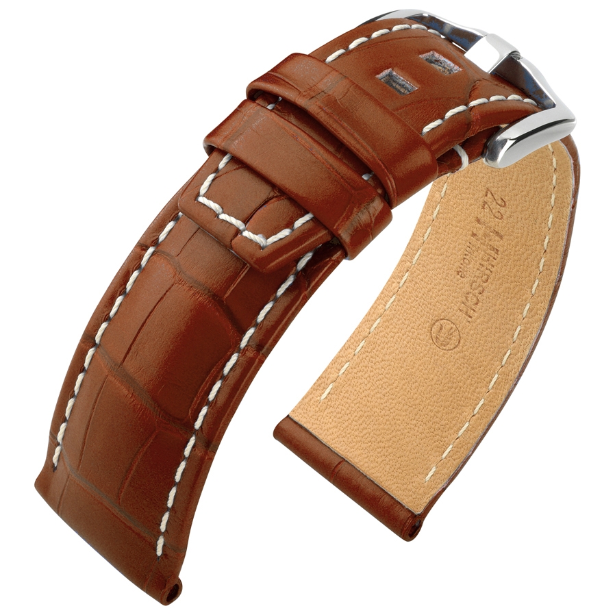 Hirsch Tritone Uhrenarmband Nilkrokodil Leder Halb-Matt Goldbraun mit Weisser Naht