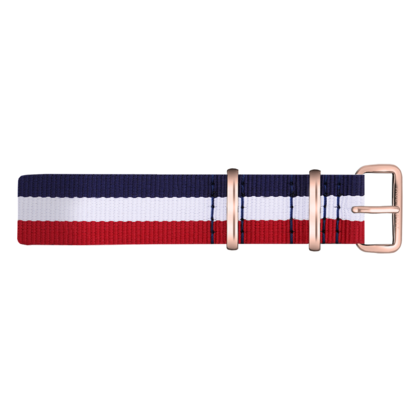 Paul Hewitt NATO Uhrenarmband Marineblau Weiss Rot mit Roségoldener Schliesse 20mm