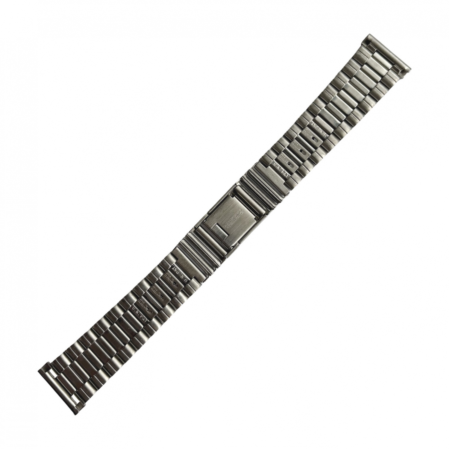 Dieses Uhrenarmband hat eine dehnbare Schliesse, und die ersten beiden Glieder rechts und links von der Schliesse können einzeln entfernt werden um das Band bei Bedarf einzukürzen.
