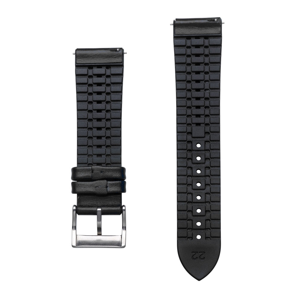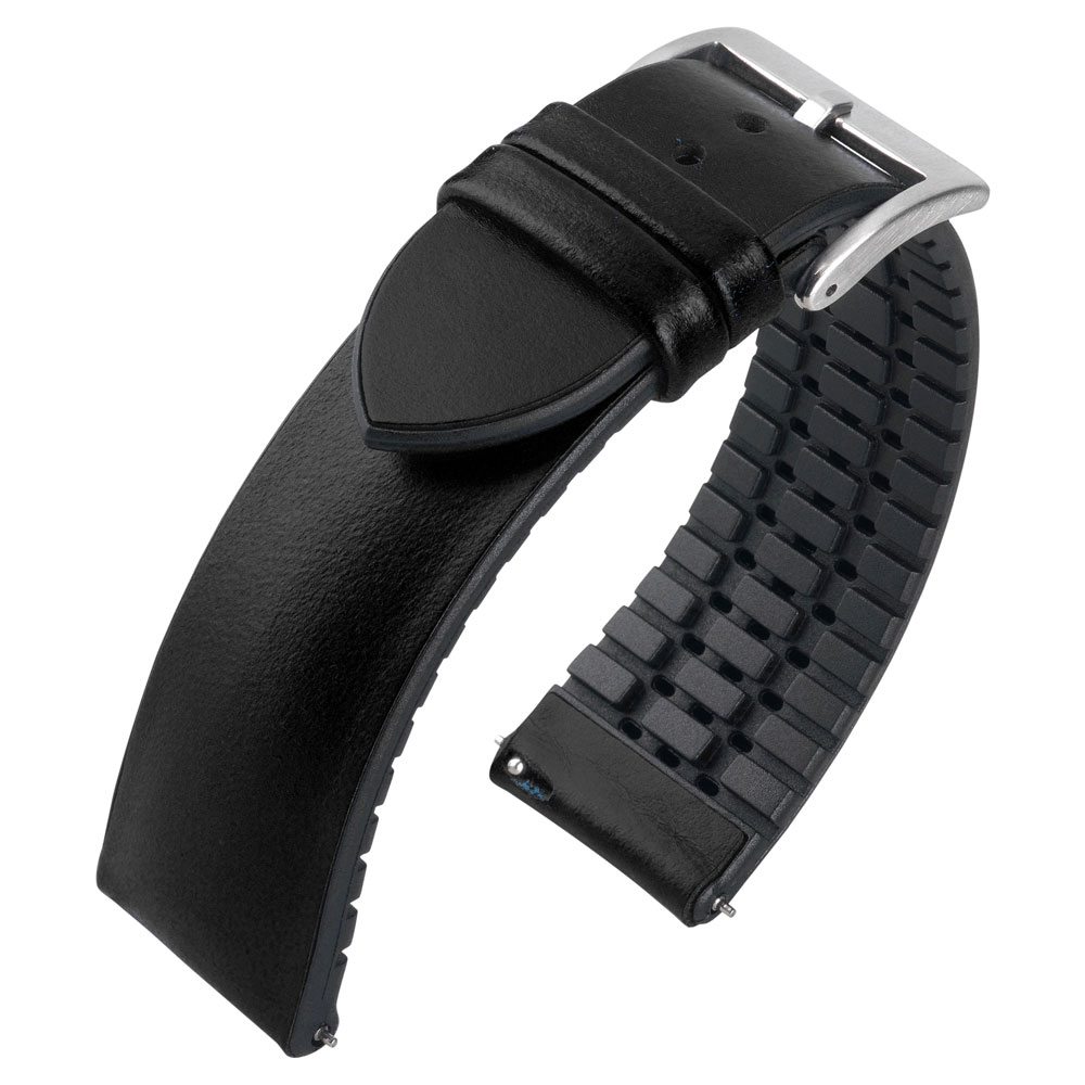 Schwarzes Leder auf Schwarzem Gummi Uhrenarmband